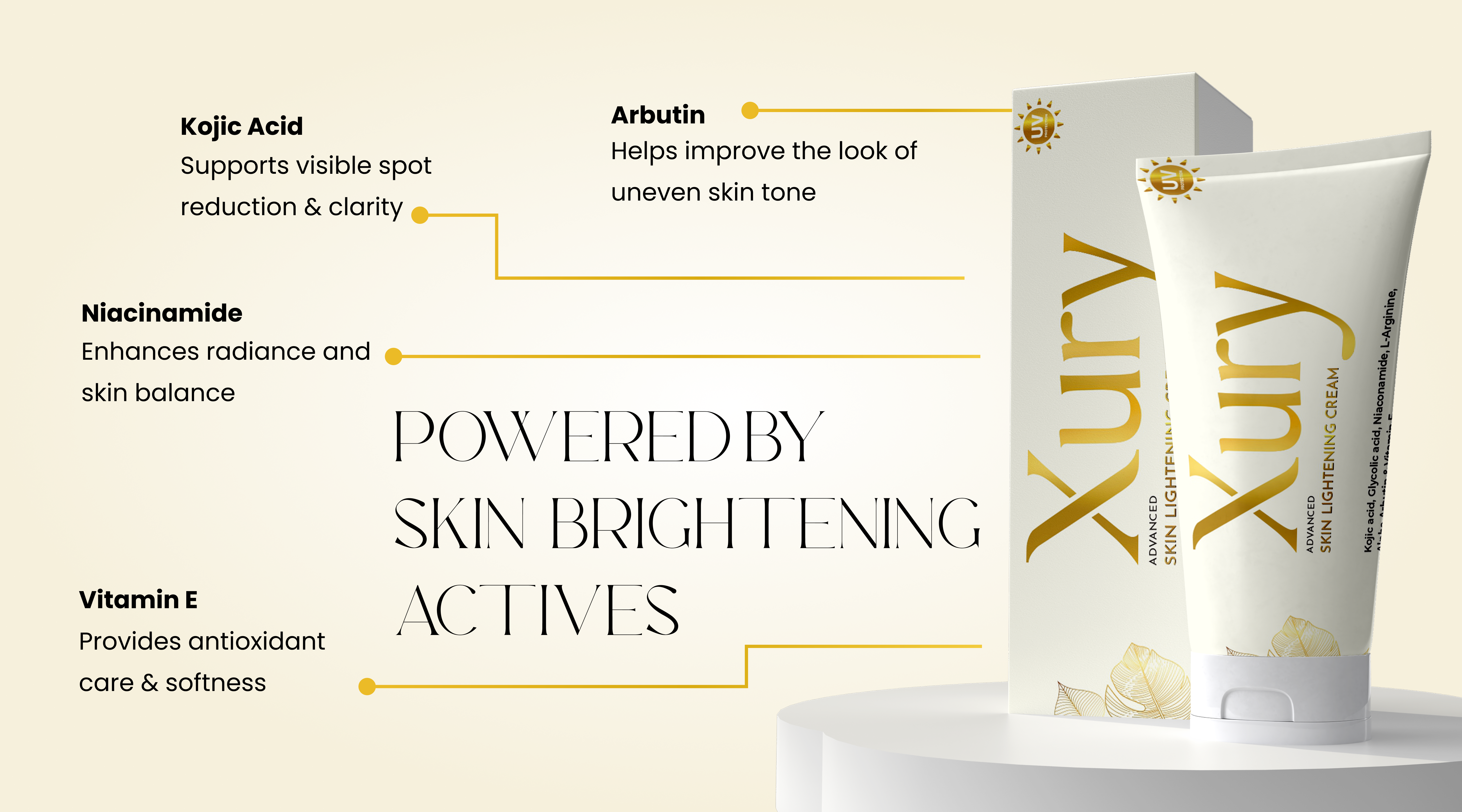Xury Advanced Skin Lightening Cream| Kojic Acid & Arbutin | Niacinamide & Vitamin E